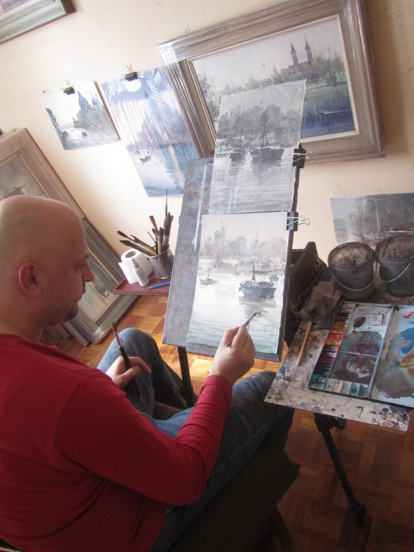 Discovering aquarelles of Dusan Djukaric, serbian painter born in 1971, is a kind of delight that makes me think about simplicity of light, rain and water in a true different way. Dusan is a master watercolorist and one of my top favorites, especially in painting Belgrade and Venetian street motives. A touch of romance, carefully planned and nicely balanced tonal qualities, sfumato backgrounds and skipped unnecessary details (in the right places) – that all creates a magic for me. Yes! I’m very happy and proud to know Dusan personally: http://www.dusandjukaric.com/